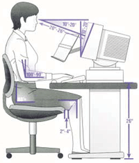 Η καρέκλα θα πρέπει να ρυθμίζεται έτσι ώστε τα χέρια να είναι παράλληλα με την επιφάνεια του γραφείου και τα πόδια να ακουμπούν άνετα στο δάπεδο.